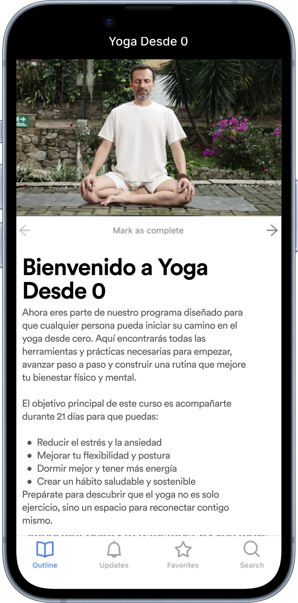 “Siempre me daba vergüenza ir a una clase porque pensaba que no me iba a salir nada. Con Yoga desde Cero practico tranquila en casa y el instructor explica tan claro que parece que me guiara en persona.”